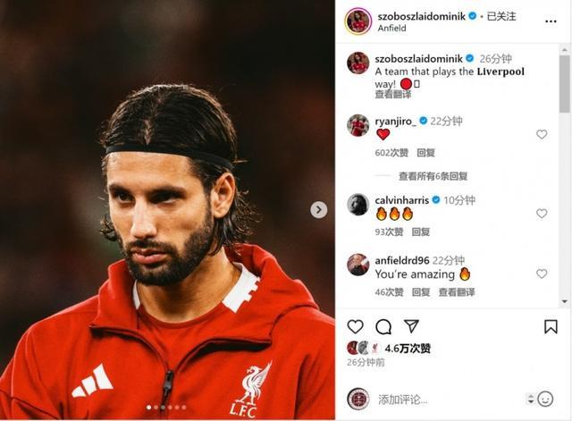 索博斯洛伊社媒晒出比赛照片,庆祝球队取胜,配文:“一支以利物浦方式踢球的球队!”