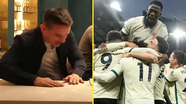 赌注是:如果内维尔输了,他必须在基兰收藏的2021年曼联主场0-5惨败于利物浦的比赛门票上签名。