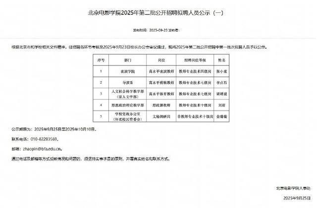 9月25日,北京电影学院2025年第二批公开招聘拟聘人员公示,乒乓球名将梁靖崑被拟聘为人文社会科学教学部高水平体育教师,拟聘岗位等级为教师专业技术七级岗。