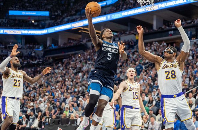 美媒在对新赛季西部球队分档时,除了雷霆和掘金一档之外,和火箭、快船处在同一区间的还有森林狼。上赛季森林狼常规赛49胜33负,勉强拿到季后赛直通门票,但到了季后赛,他们以下狗的姿态,成为了“传奇终结者”。首轮4-1绅势横扫湖人,湖人被打掉遮羞布,没有内线的巨大短板,包括詹姆斯在防守端被屡屡针对的现实,森林狼没遇到任何阻力。次轮打勇士,森林狼先输一场,但当库里倒下后,森林狼面对巴特勒没有留情,连赢四场再度绅士横扫,连续两个赛季打进西决。虽然在西决,他们面对雷霆没有还手之力。