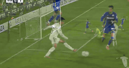 上半场补时阶段,皇马获得前场位置不错的任意球,久违的阿拉巴亲吻皮球,起脚射门,皮球的弧线相当诡异,门将注意力集中,将球扑出。
