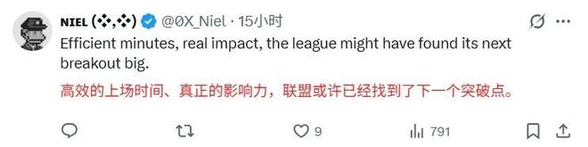 可是在内行看来,一名新秀在季前赛就能拿出这样的数据,已经做得很不错了,比如开拓者的队记就公开表示,杨瀚森季前赛能得到这样的数据,应该给他竖大拇指,因为之前大家不认为他能够得到这样的数据,可是杨瀚森做到了,觉得杨瀚森了不起,在一些内行看来,季前赛要求一名新秀砍下14分20个篮板,这是不现实的。