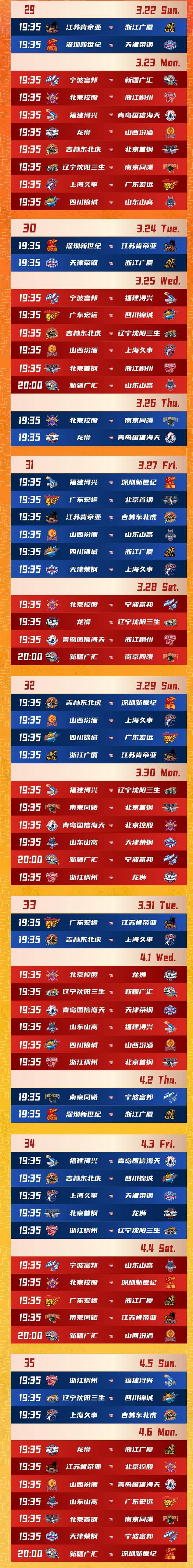 新赛季的赛程,我全部放在了下面,喜欢CBA的球迷朋友们,赶紧收藏起来,以免到时候找不到了吧。