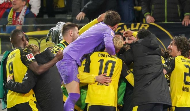多特蒙德在主场完成极限绝杀,以1-0击败了科隆。主场作战的多特蒙德一直占据优势,在场面上形成压制,进球机会源源不断出现。但是,直到补时阶段,多特蒙德才取得进球。拜尔绝境爆发,一击致命,帮助多特蒙德全取3分。这场比赛多特蒙德全场疯狂射门27次,竟然只取得1粒进球,真是难以置信。科隆门将施瓦伯尽力了,他做出了8次扑救,但还是功亏一篑。