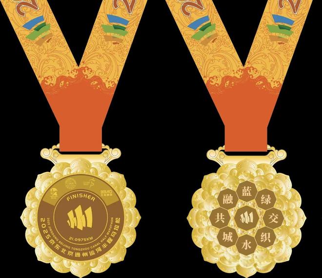 经过赛事组委会的精心策划和设计,2025京东北京通州运河半程马拉松完赛奖牌正式亮相。
