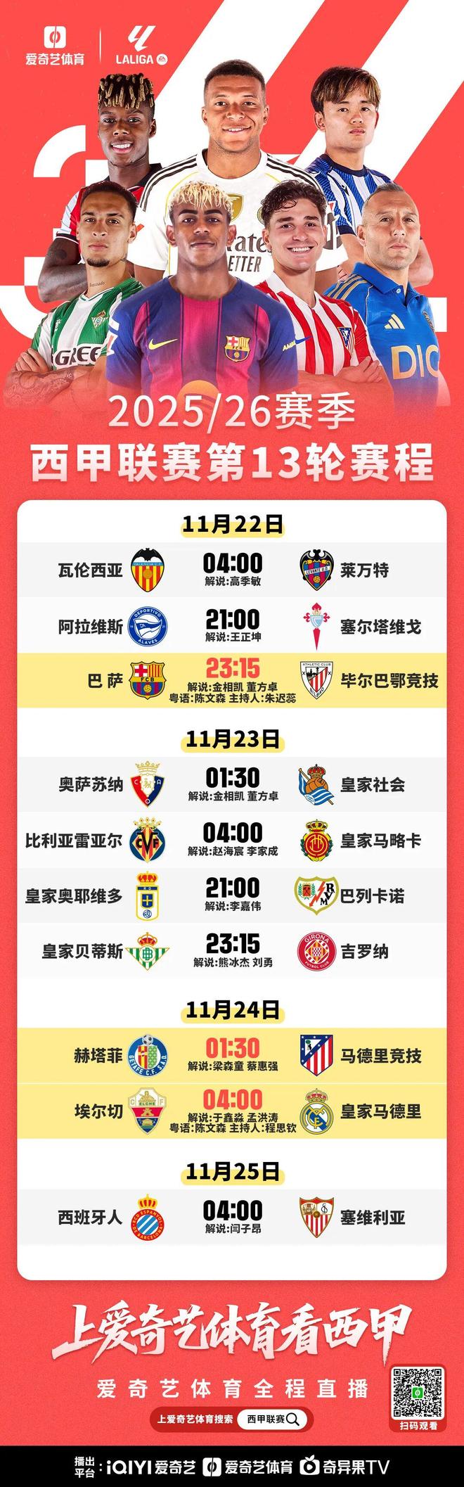 本周六晚,随着国际比赛日结束,西甲即将重燃战火。巴萨将回归诺坎普对阵毕尔巴鄂竞技。这是诺坎普因翻修工程暂停主场使用两年半后,巴萨首次重返这座标志性球场作战。本场比赛,爱奇艺体育将全程直播。