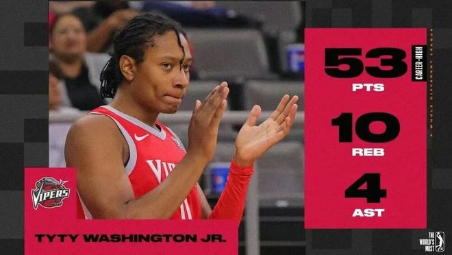 效力于圣地亚哥快船期间,小华盛顿的表现堪称炸裂,场均能轰下17.9分4.6篮板5.9助攻1.5抢断,投篮命中率46.5%,三分命中率也有41.1%,攻防两端的效率都相当在线。更值得一提的是,这位2001年出生的年轻后卫,曾在G联盟打出过单场53分10篮板4助攻的逆天数据,得分爆发力完全不用担心。