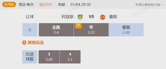 本场机构普遍给出平手的指数,也不看好曼联能客场轻松带走3分,综上我看好利兹主场能守住一场平局。