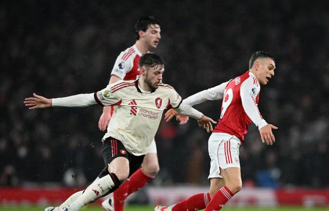 比赛进入30分钟之后,场面基本被阿森纳控制,射门次数也是增多。第36分钟,特罗萨德禁区内晃开角度一脚打门稍稍偏出。第44分钟,阿森纳传中被解围出去,赖斯弧顶一脚射门被门将阿利松没收。