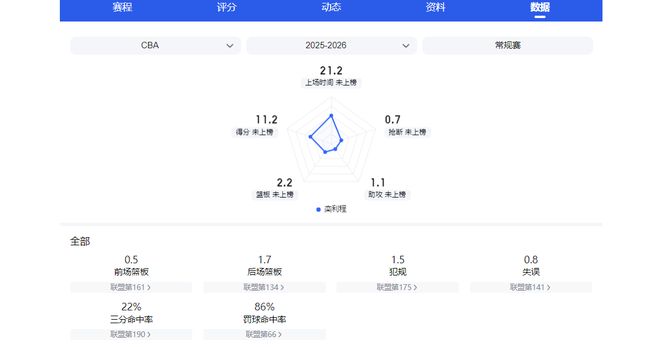 直到24-25赛季来到吉林男篮后,栾利程的命运齿轮终于开始旋转,也逐渐找回当年在宁波大学时候的自己。本赛季12次出场后,他各项数据创职业生涯新高,场均可砍11.2分2.2篮板1.1助攻,投篮命中率可保持在51.6%。