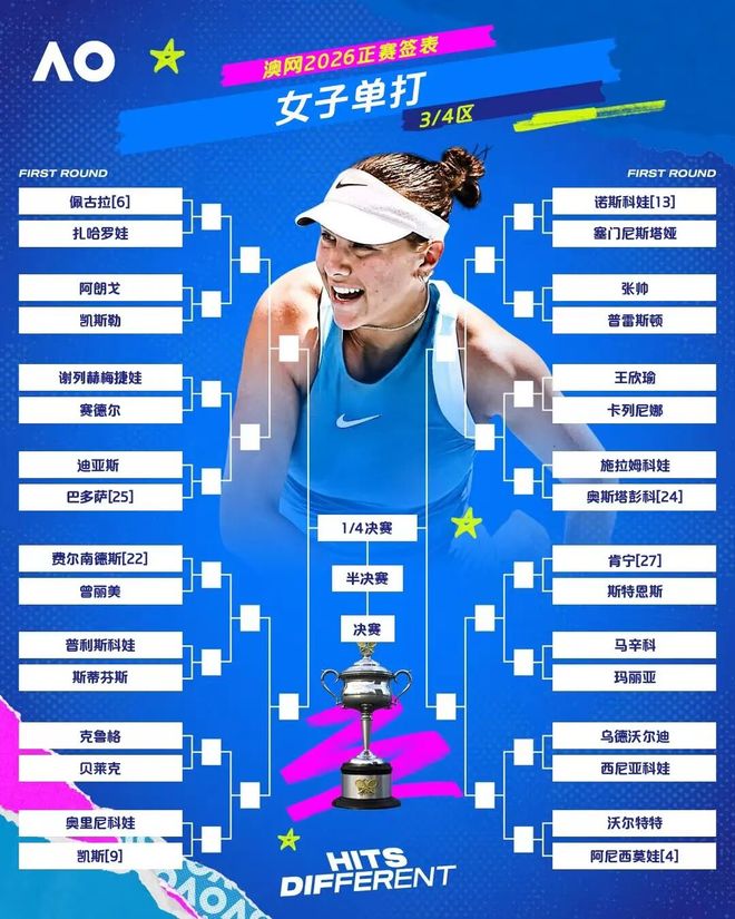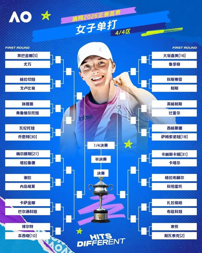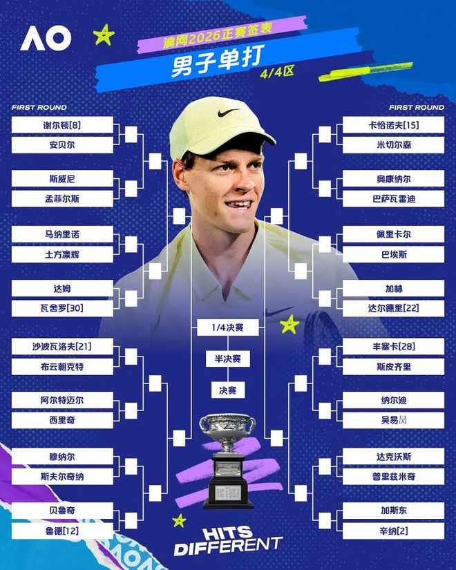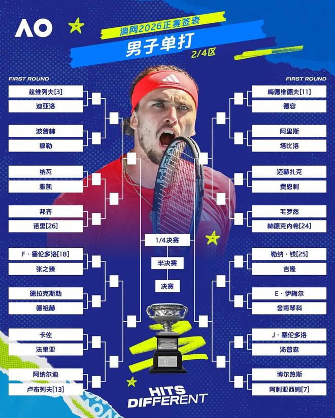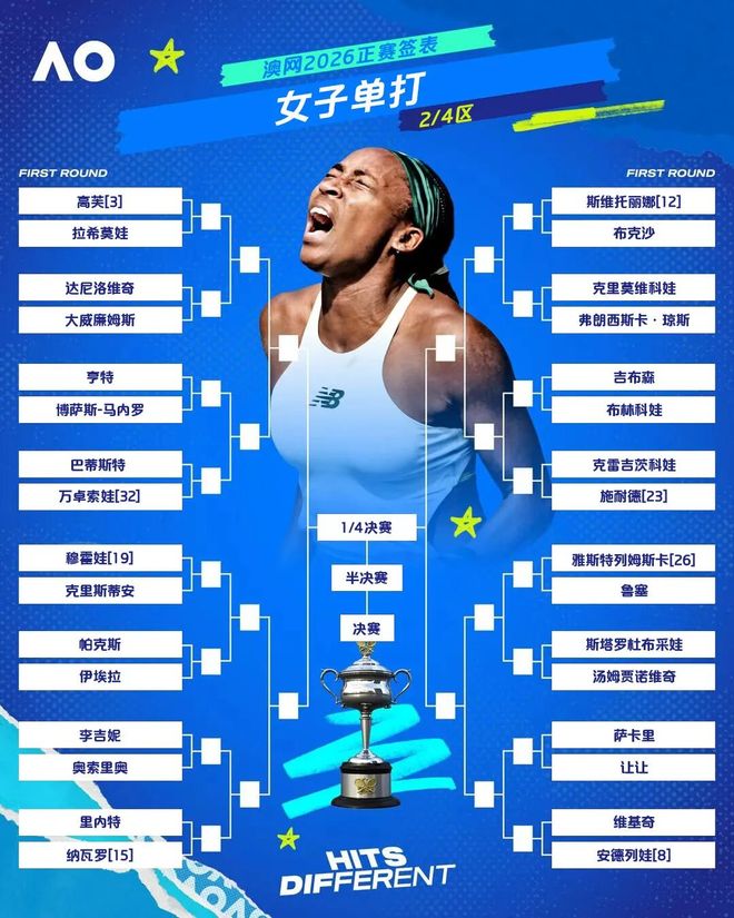 2026澳大利亚网球公开赛正赛签表出炉